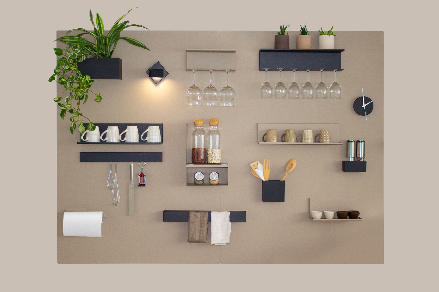 Im Showroom reicht eine kuratierte Auswahl an Paneelen, Accessoires und Magnetlösungen aus, damit der Kunde Materialien sehen und anfassen, die Modularität verstehen und sein bevorzugtes Layout konfigurieren kann.